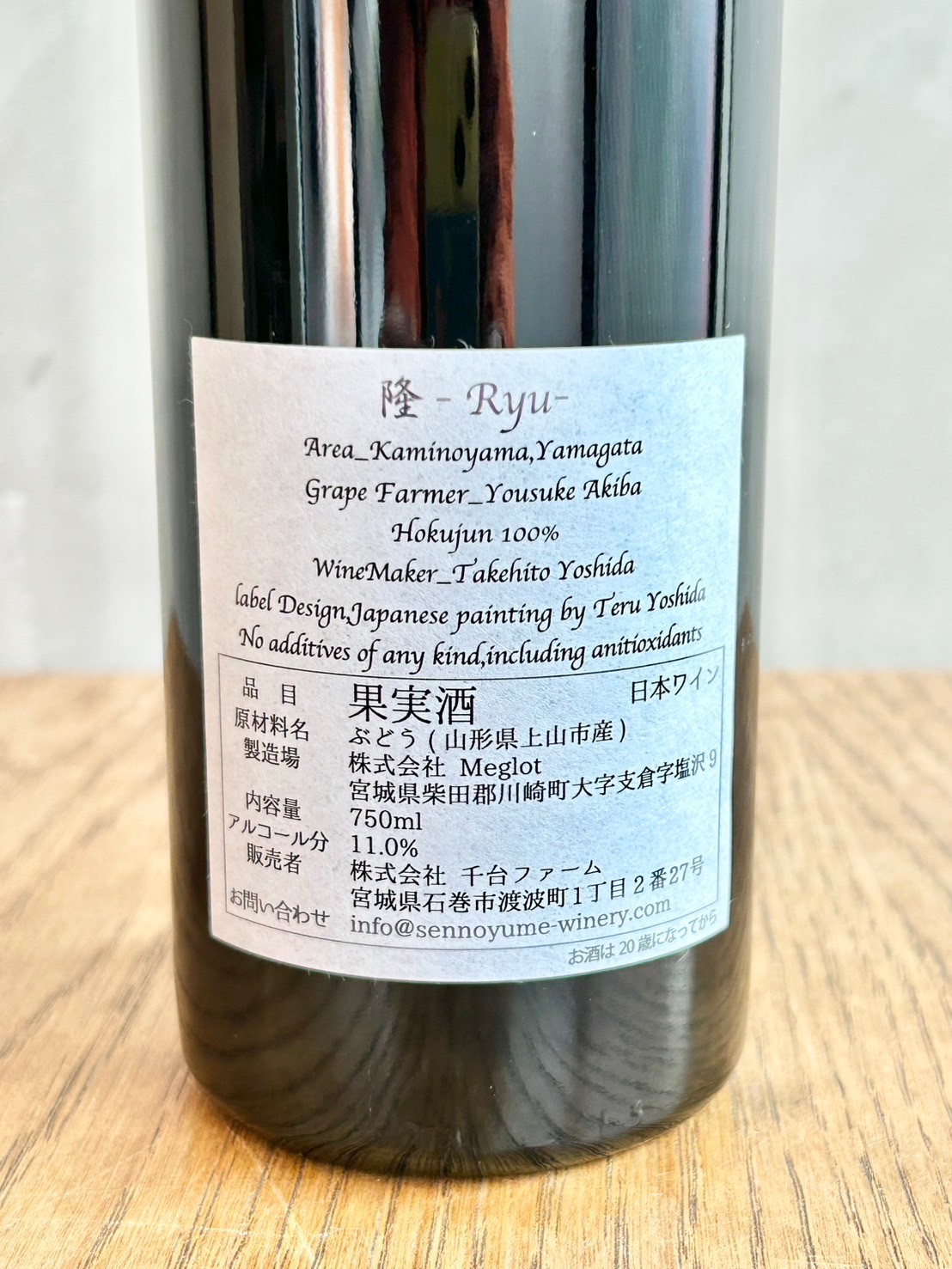 2023年の「隆」は、上山市の秋葉さんが育てた北酵を100%使用した特別なワインです。