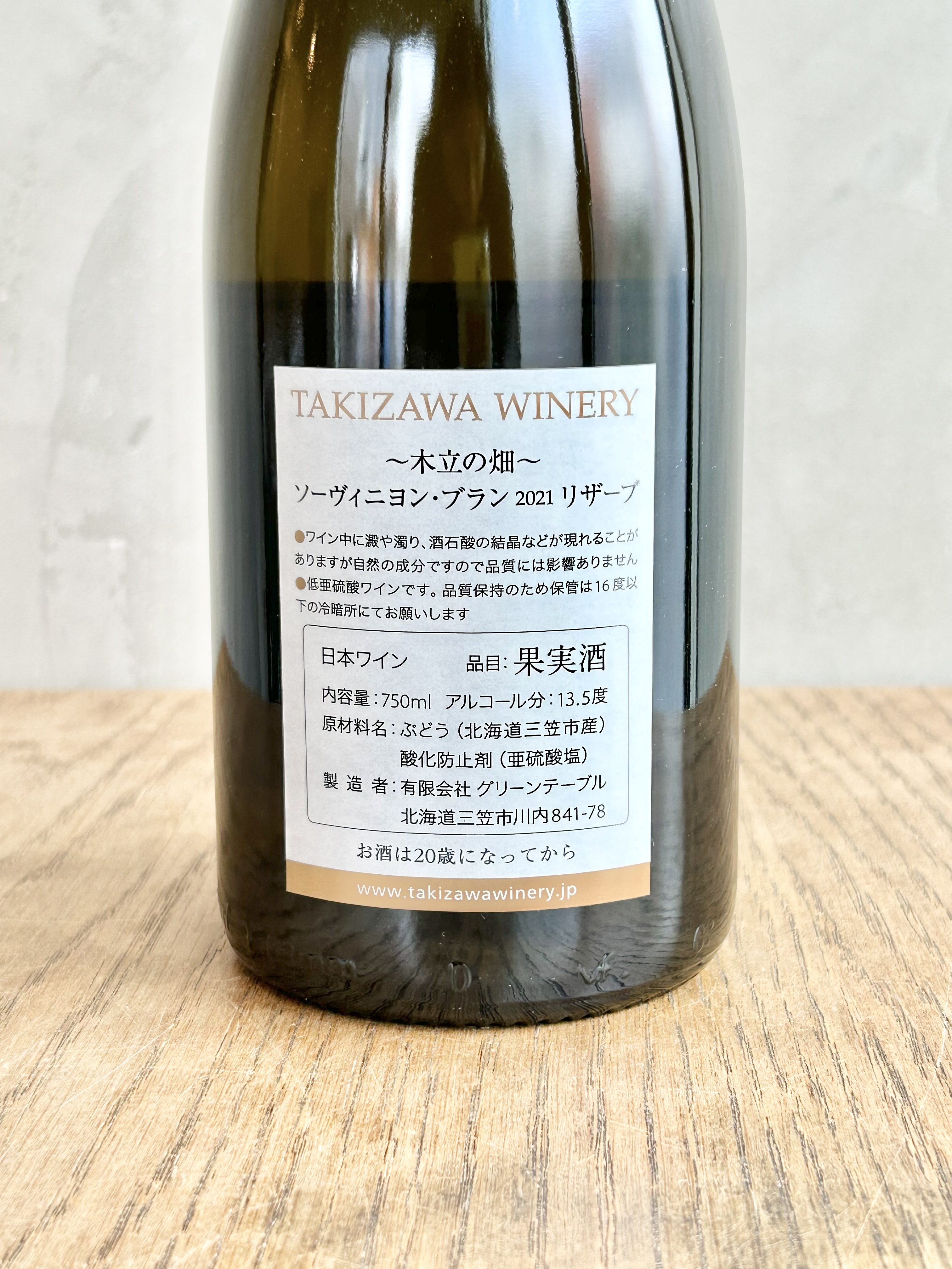 タキザワワイナリー自社畑「木立の畑」のソーヴィニヨンブランのみを使用した白ワインです。