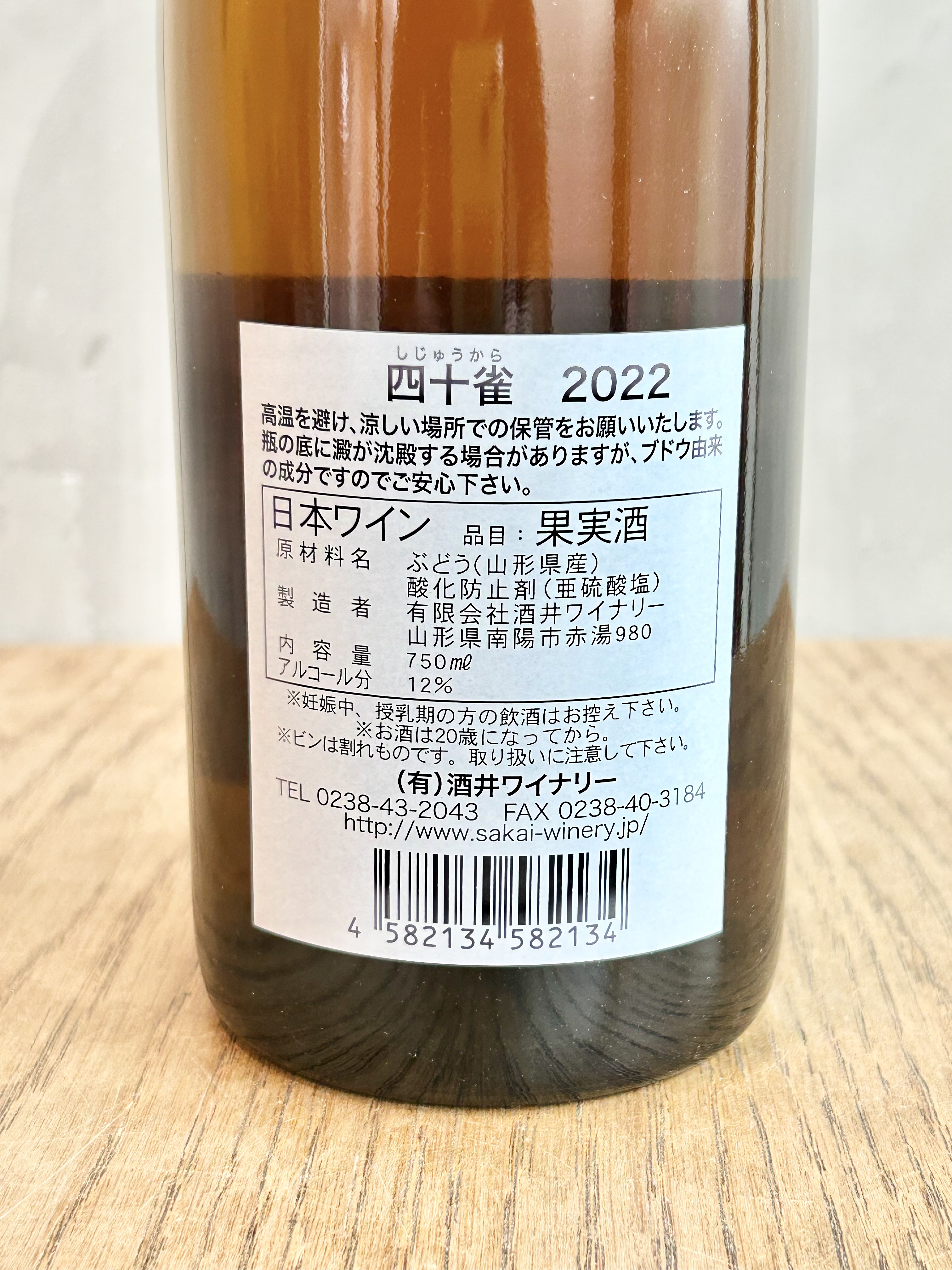 酒井ワイナリーのワインは、酸化防止剤の添加を最小限にとどめています。温度変化にさらされますと品質劣化の恐れがございます、低温での管理(15度以下)をお願いいたします。
