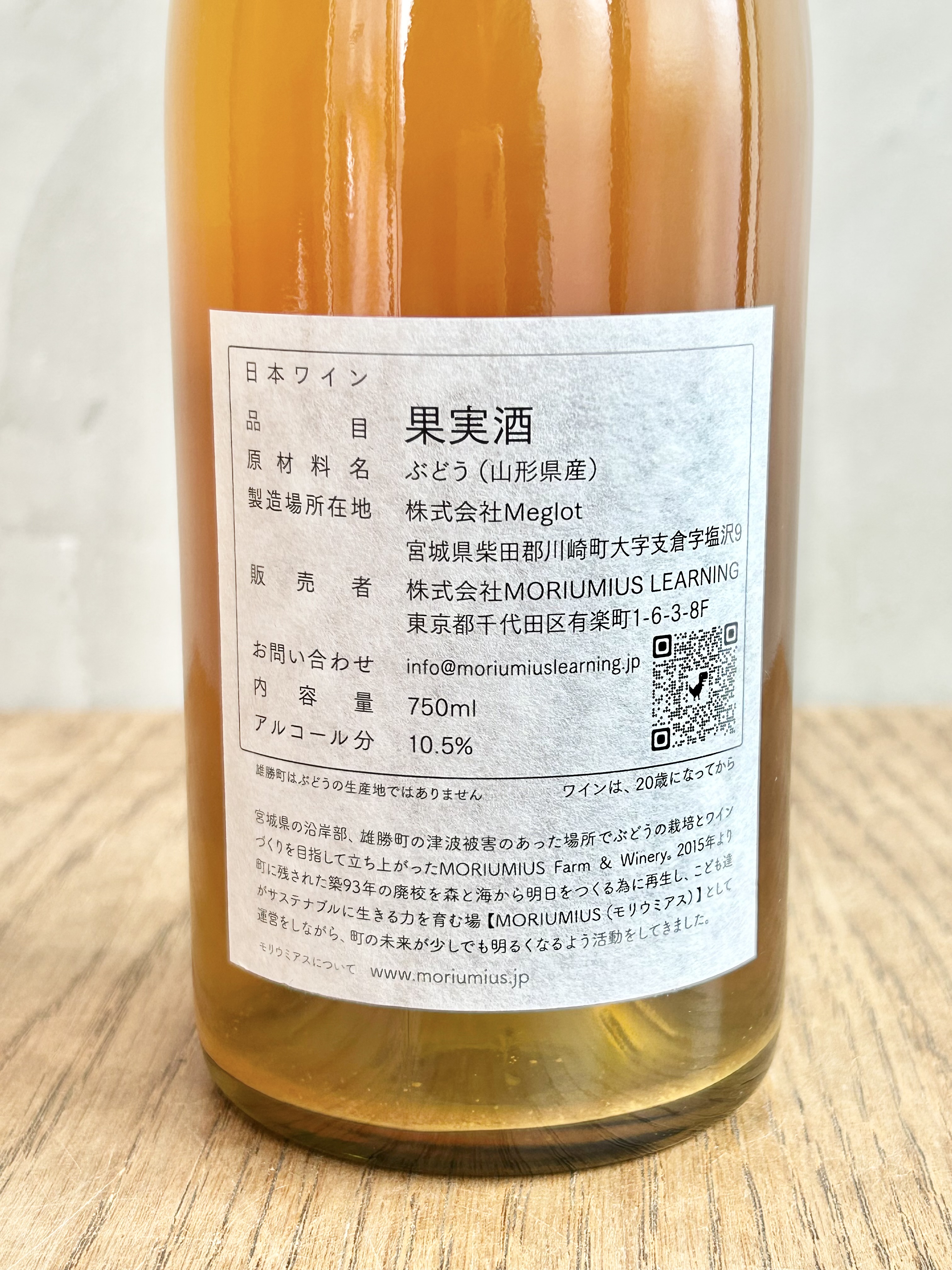 宮城県石巻市で、こども達の学び場とサステナブルな町づくりを目指す「MORIUMIUS FARM & WINERY」から、人を惹きつける不思議な魅力を持ったオレンジワイン「YOKOU 陽光 2024」が届きました。