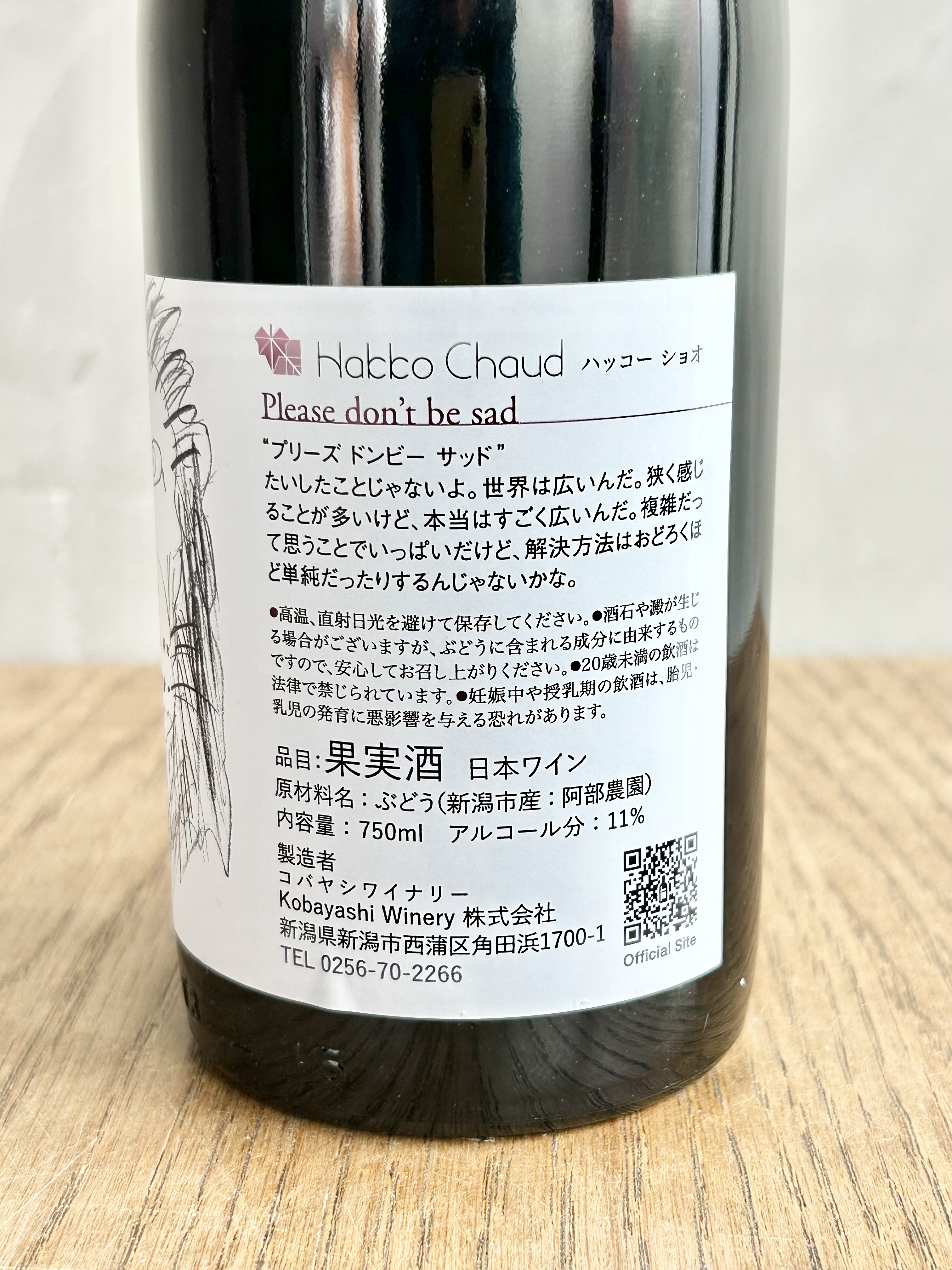 新潟の砂丘地に構えるワイナリー「hakko chaud・ハッコーショオ」小林さんから、「悲しまないで」という少し感傷的で美しい名前がつけられた赤ワイン「Please don't be sad 2024」が届きました。